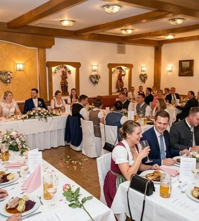 Wenn wir Hochzeiten im Gasthaus Esterer in Zellerreit begleiten, erleben wir eine Location, die bayerische Gastlichkeit, viel Platz und eine besonders warme Atmosphäre verbindet. Mit Schloßstube, großem Saal und Biergarten lässt sich hier eine Hochzeitsfeier sehr stimmig gestalten – von einem festlichen Essen bis zur ausgelassenen Feier am Abend.