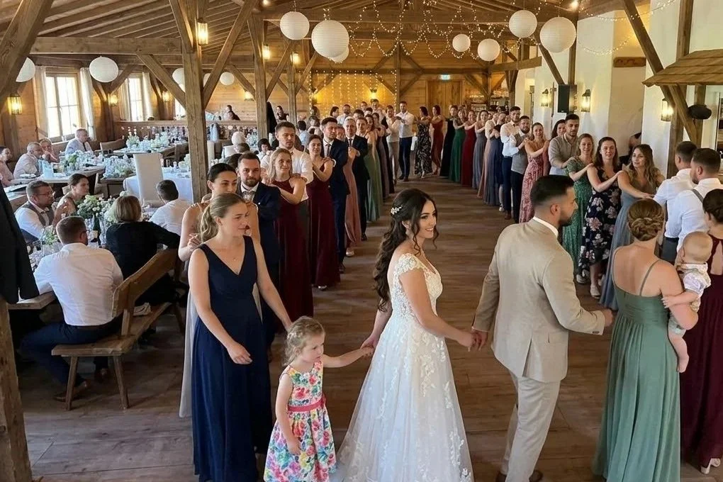 Wenn wir Hochzeiten im Landgasthaus zur Linde in Pleiskirchen begleiten, erleben wir eine Location, die viel Raum für einen stimmungsvollen und abwechslungsreichen Hochzeitstag bietet. Besonders die große überdachte Freifläche hinter dem Gasthaus ist ideal für freie Trauungen und Sektempfänge im Freien. Mit dem weiten Blick über Felder, Wiesen und bei schönem Wetter sogar auf die Alpen entsteht hier eine besondere Atmosphäre, die Trauung und Empfang sehr persönlich wirken lässt.